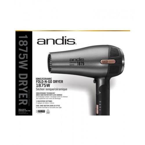 Andis 80280 Fold-n-go 1875 Watt Ceramic Ionic Dryer, Retractable Cord, Black/sil